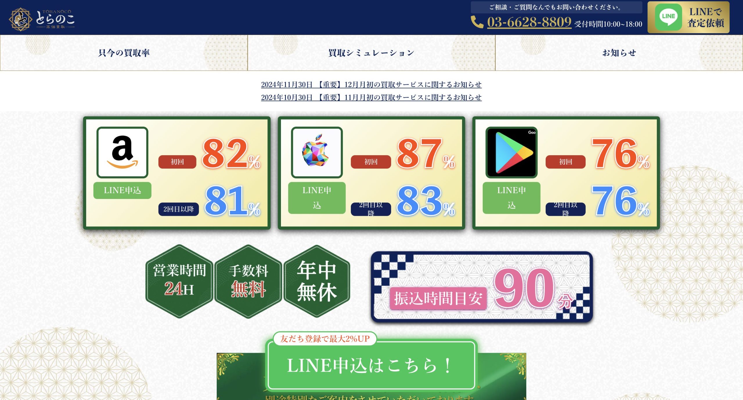 2章でお伝えした通り、換金率は80%〜90%が妥当ですのでそれ以上に業者を選ぶのはやめましょう。